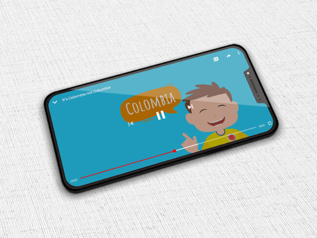 Description For this exercise I created a 30 seconds video of a common phonetic mistake of the name of the country of Colombia. I created all the illustrations and the video. AAU Young and Hungry Agency Adobe After Effects, Adobe Illustrator